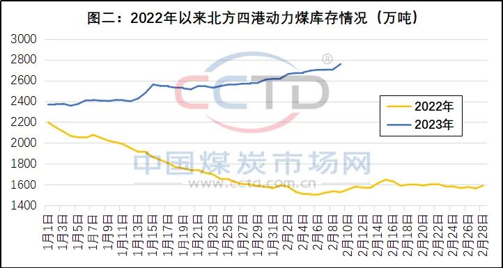 3、港口和發(fa)電企業的動力煤(méi)庫存被推高。受動(dong)力煤消費萎縮、采(cǎi)購需求低迷的影(ying)響,春節過後,北方(fang)港口和沿海地區(qū)☔發電企業✂️的動力(lì)煤庫存持續走高(gao)。一方面,截至今年(nian)12月7日(見圖二),北方(fang)四港(秦皇島港、曹(cao)妃甸港、京唐港和(hé)♈黃骅港)的動力煤(méi)庫存為2758.1萬噸、同比(bǐ)增加了1230.7萬噸,處于(yu)近幾年來同期✊高(gao)點,部分港口甚至(zhì)不得不采取“疏港(gang)”措施,以減輕庫存(cun)偏高導緻的港口(kou)✉️作業壓力。